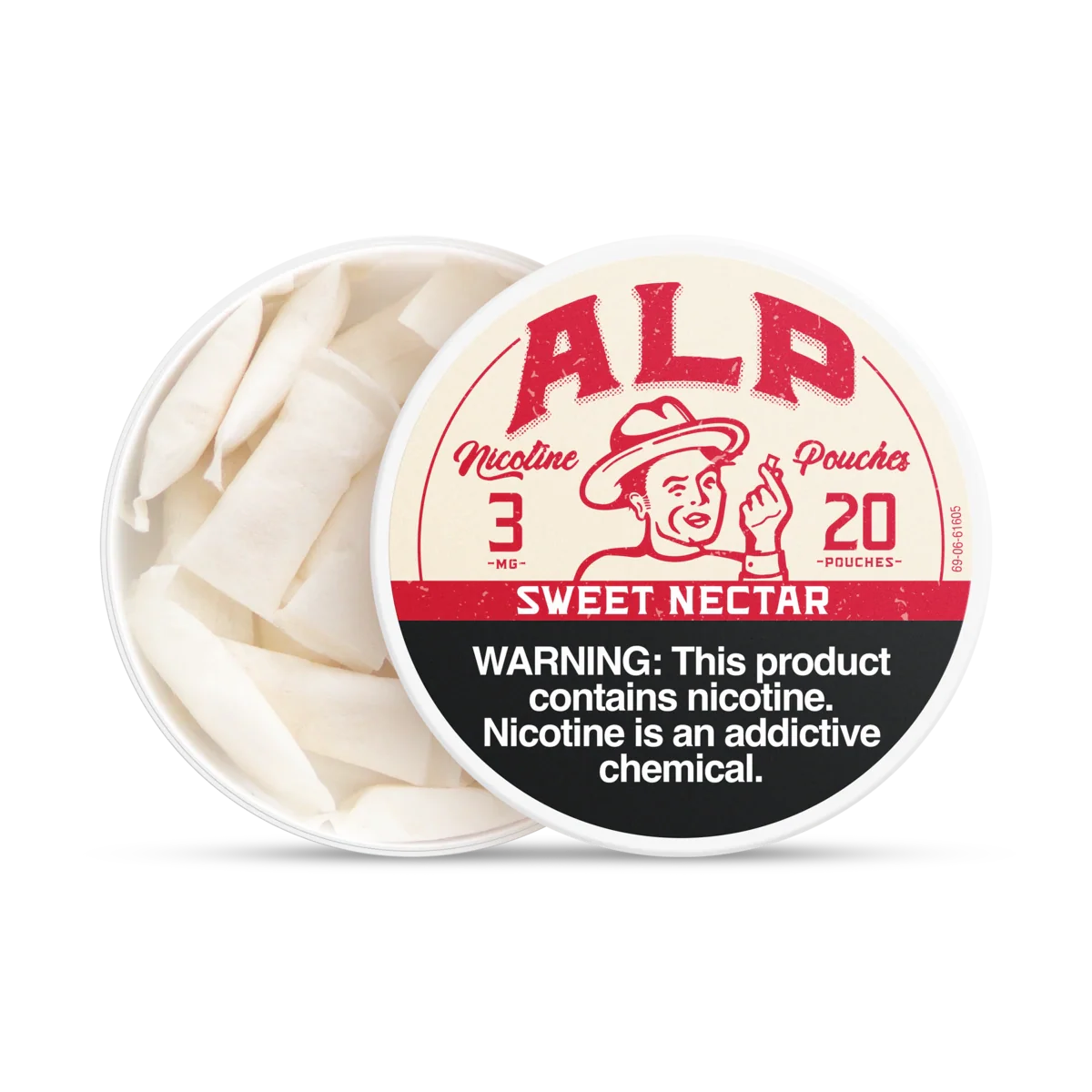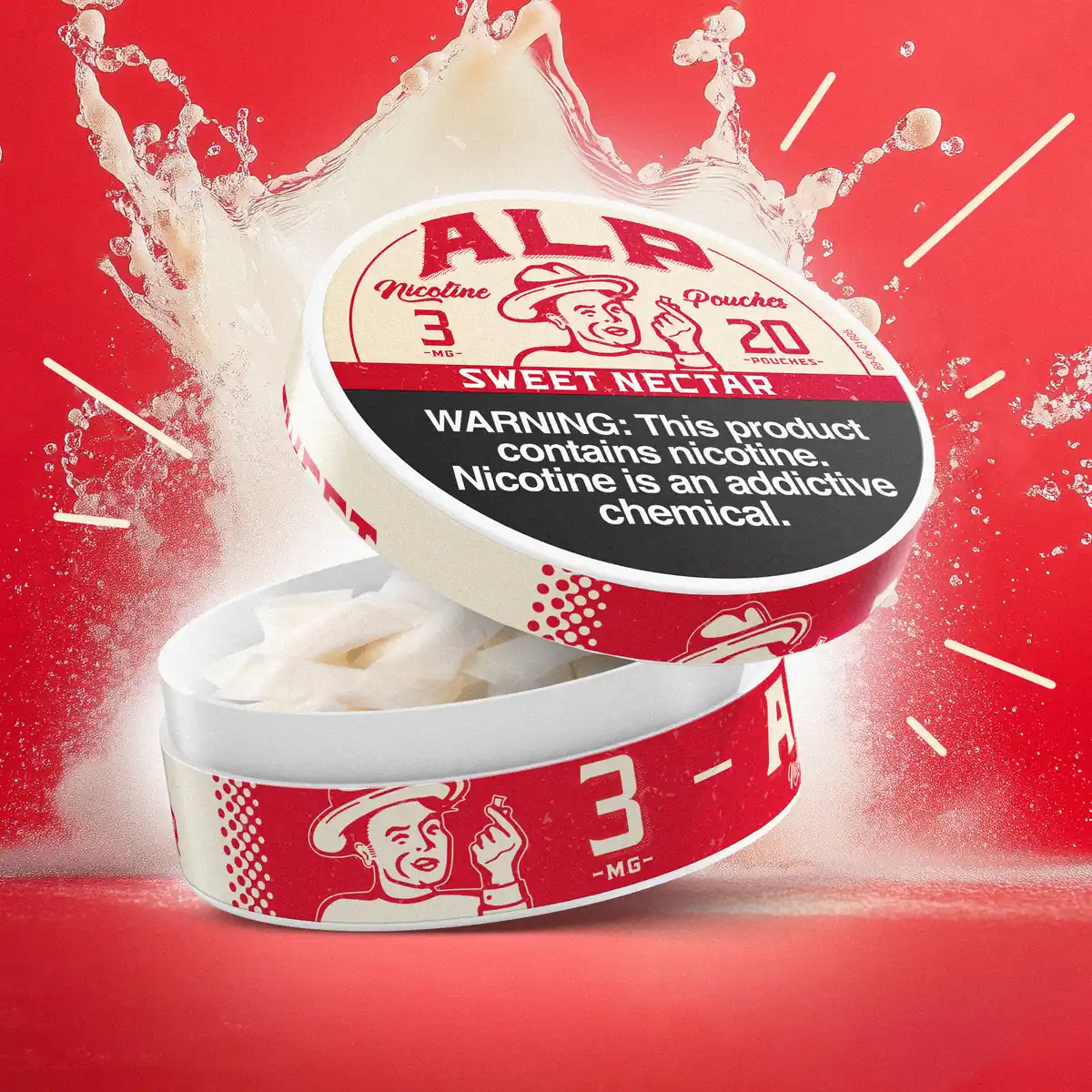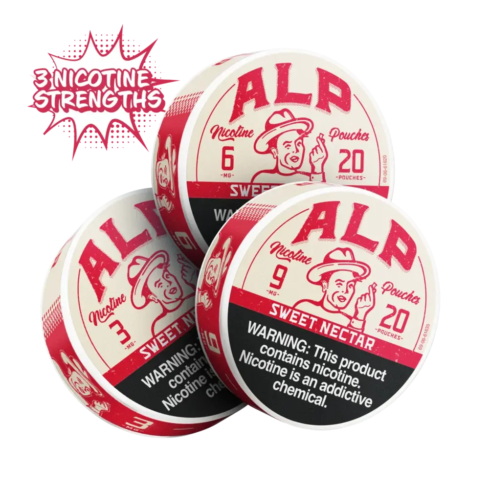 Limited-edition ALP Sweet Nectar Nicotine Pouches deliver bold, icy flavor in 3mg, 6mg, and 9mg strengths. 20 moist pouches per tin. No restock—shop now.
